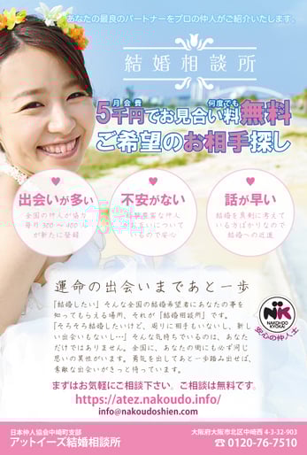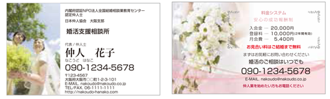 まだ、あなたが仲人で、どこでどんな人を対象にお世話をするか、誰も知りません。例えば、もし新しく喫茶店を始めたら、まずは看板を出して、宣伝をしますよね?それは仲人業でも同じです!名刺・チラシを配り、ホームページを見てもらう。「仲人開業パック」であなたの「仲人生活」がスタートします!